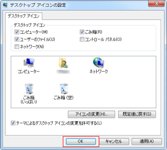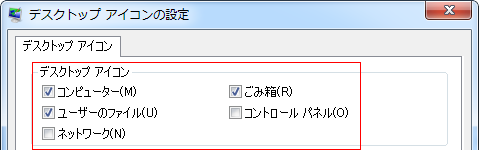 - デスクトップに配置するアイコンをチェックします。